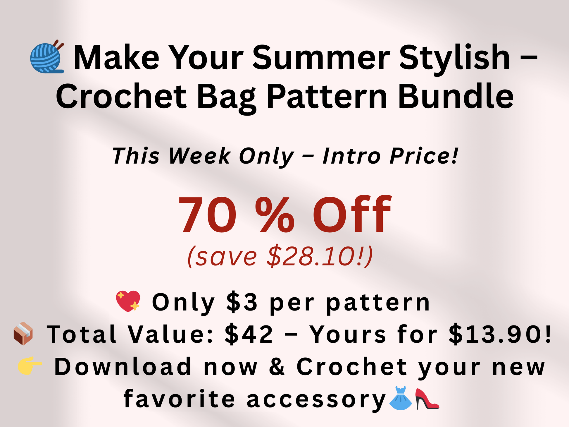 Ready to crochet the cutest, trendiest bags from the comfort of home? This exclusive bundle includes 4 bestselling crochet bag patterns – perfect for everyday use, gifting, or launching your handmade bag business!